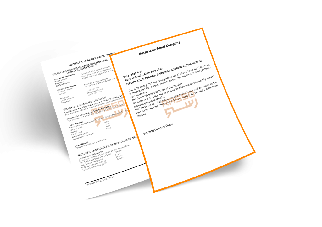 All pistachio charcoal briquettes are tested during production and before loading into the container. More information about coconut charcoal briquettes certification .